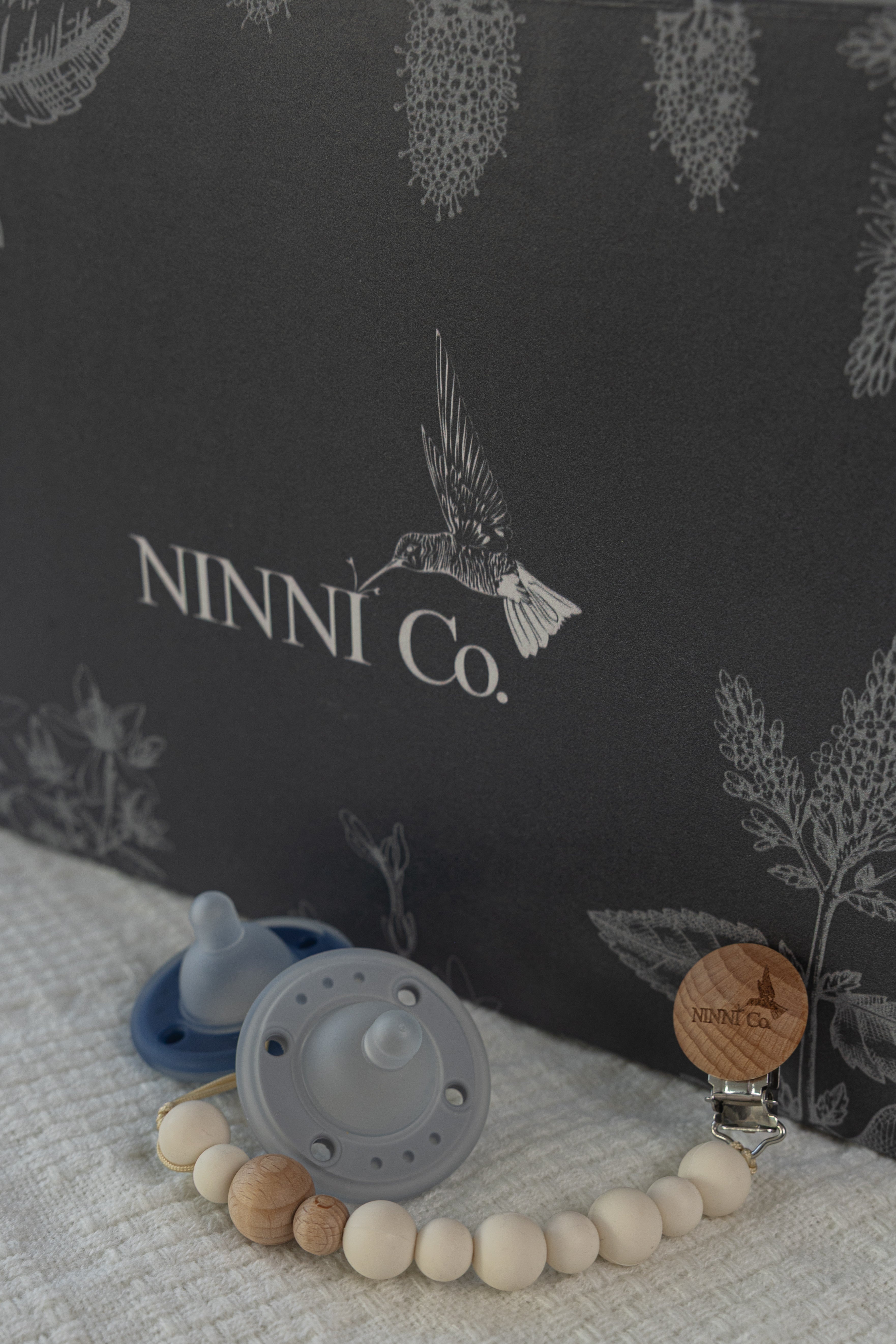 When you give the gift of Ninni Co., you’re giving parents something they can trust. Every product is crafted to the highest quality standards and thoughtfully designed for babies’ comfort and development. Ninni Co. pacifiers support a baby’s natural latch and promote healthy oral growth, making them an excellent choice for all babies, whether breastfed or not. Made from soft, pliable, breast-like silicone, they encourage a relaxed, open-mouth grasp that strengthens oral muscles, supports proper tongue movement, and helps develop the jaw. Parents also love that our products are easy to clean and completely free of harmful chemicals, making every gift both safe and meaningful. We round out our perfectly selected sets with all the must have baby items necessary to go with your one-of-a-kind pacifiers. Whether you choose Essentials, Must Haves or the Ultimate, every item you receive will be something you will use time and time again!