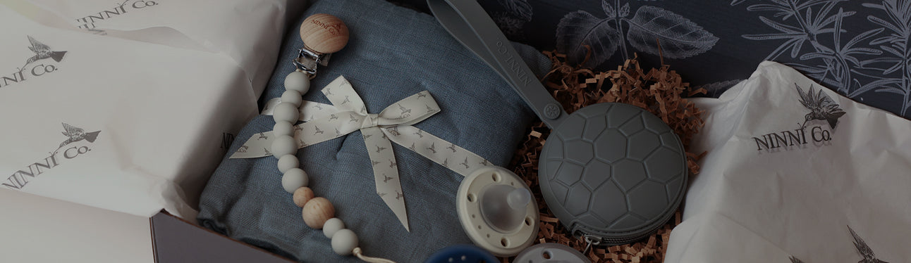 When you give the gift of Ninni Co., you’re giving parents something they can trust. Every product is crafted to the highest quality standards and thoughtfully designed for babies’ comfort and development. Ninni Co. pacifiers support a baby’s natural latch and promote healthy oral growth, making them an excellent choice for all babies, whether breastfed or not. Made from soft, pliable, breast-like silicone, they encourage a relaxed, open-mouth grasp that strengthens oral muscles, supports proper tongue movement, and helps develop the jaw. Parents also love that our products are easy to clean and completely free of harmful chemicals, making every gift both safe and meaningful. We round out our perfectly selected sets with all the must have baby items necessary to go with your one-of-a-kind pacifiers. Whether you choose Essentials, Must Haves or the Ultimate, every item you receive will be something you will use time and time again!